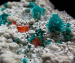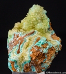 Apatite psuedo. Tarbutite, Smithsonite, and Zincolibethenite included Hemimorphite form the Skorpion Mine, Namibia.